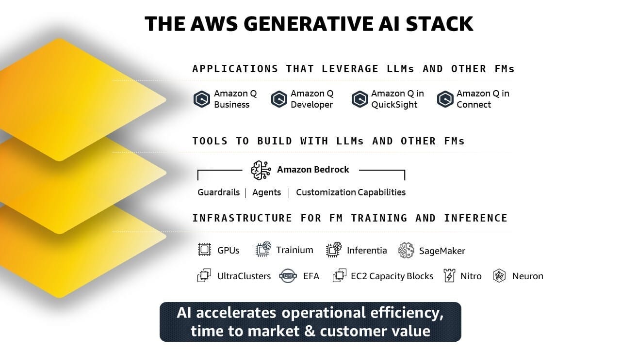 Which brings us back to our three-layer cake from before. The easiest way to think about Generative AI is to view it as an architecture comprising three layers of a stack:
